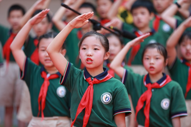 武漢市洪山區廣埠屯小學舉行慶祝中華人民共和國成立70周年《禮贊》活動。