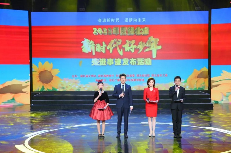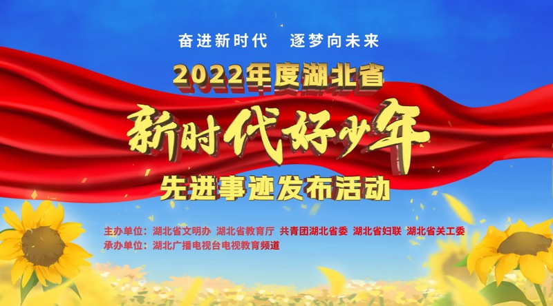 為深入貫徹落實習近平新時代中國特色社會主義思想,積極培育和踐行社會主義核心價值觀,幫助青少年“扣好人生第一??圩印?,2023年3月6日,由湖北省文明辦、湖北省教育廳、共青團湖北省委、湖北省婦聯、湖北省關工委主辦,湖北長江廣電教育傳媒公司(湖北廣播電視臺電視教育頻道)承辦的“奮進新時代,逐夢向未來”2022年度湖北“新時代好少年”先進事跡發布活動在湖北廣播電視臺演播廳舉行。
