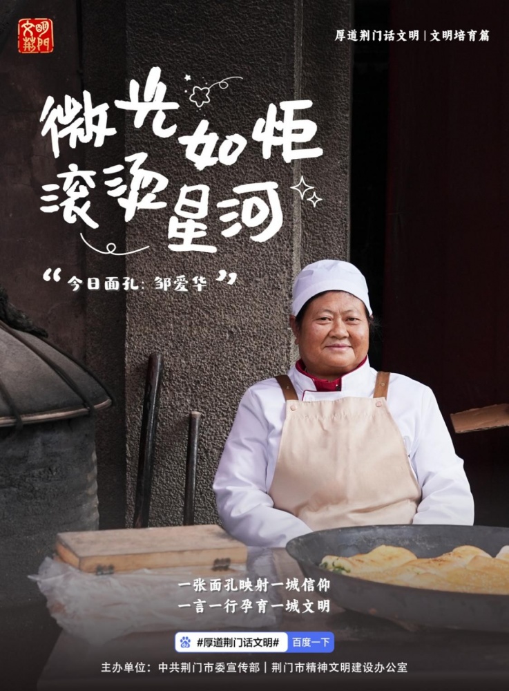 追逐榜樣光芒,煥發時代力量。“星光餅嫂”鄒愛華的身殘志堅、心懷大愛的故事,正不斷傳遞著新時代文明實踐的力量,續寫著1/255萬的厚道荊門故事,培育著孝老愛親的文明荊門。(荊門文明網、荊門市文明辦)