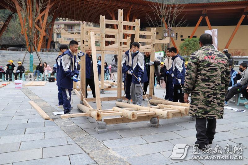 學生正在體驗非遺技藝吊腳樓研學項目。