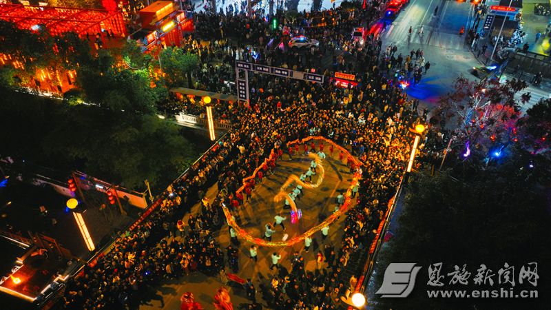 浪漫宣恩新春燈會是獨具宣恩特色的品牌活動。逛燈會、賞花燈、觀噴泉、猜燈謎、吃烤魚、乘龍舟、品民俗,舞龍、舞獅、薅草鑼鼓、三棒鼓、滾龍連廂、宣恩耍耍、土家族八寶銅鈴舞、戲曲、土家婚俗等輪番上演。這場文化盛宴,不僅豐富了人民群眾的精神生活,更成功打響了宣恩“非遺+旅游”的文旅IP,吸引著八方來客紛至沓來,感受宣恩獨特的文化魅力 。