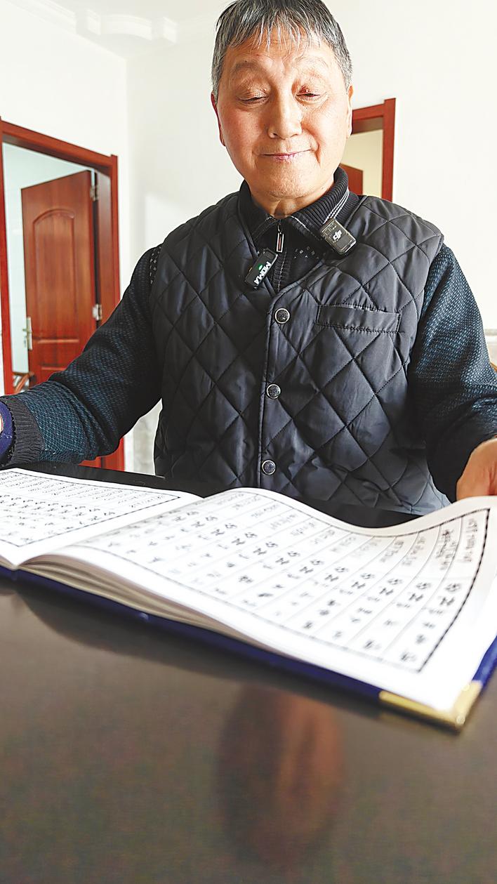 萬青松在翻閱“十元禮金簿”。