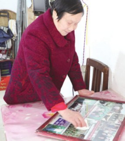 唐賢美輕輕擦拭擺滿老照片的相框。全媒體記者周洋 攝
