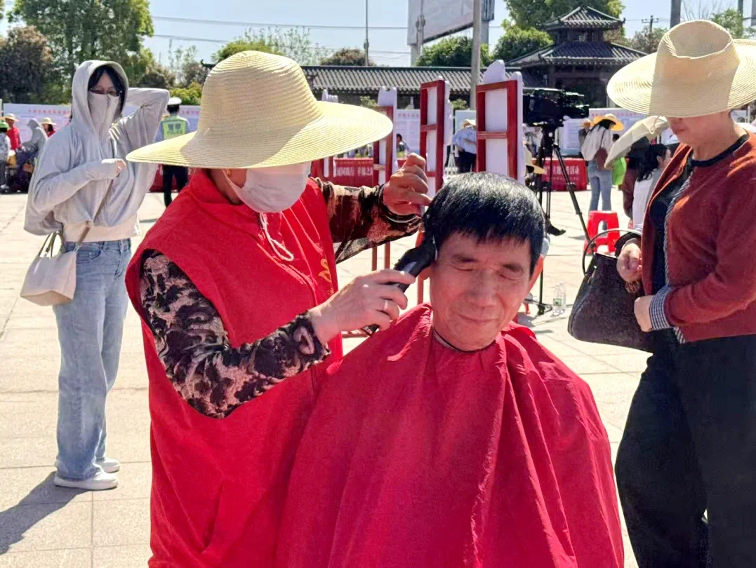 活動現場設置12個主題文明實踐專區,形成"一站式"惠民服務矩陣:荊州市社會心理學會聯合多部門開展未成年人保護宣傳,筑牢健康成長防線;荊州市中醫醫院提供義診服務,傳播中醫藥文化,助力全民健康;市科協與農業農村局聯合推廣科學種養技術,賦能鄉村振興;環保局與城管局開展垃圾分類宣傳,踐行長江大保護戰略;人社局精準對接崗位需求,打通就業服務"最后一公里"。此外,"公益理發""愛心書展""文明承諾打卡"等特色活動,將暖心服務送到群眾身邊,彰顯文明實踐的溫度與廣度。