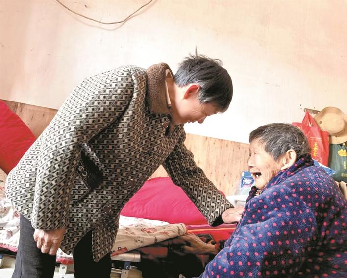 朱美英俯下身子,湊到婆婆耳朵旁,告訴她不要害怕,是關心她的人來看她了。聽見兒媳熟悉的寬慰聲,張作英放松了戒備,露出了開心的笑容。