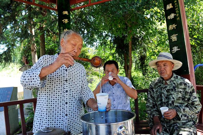 “涼茶奶奶”徐桂梅37年如一日給路人送茶,成為當地佳話。 (張大樂 攝)