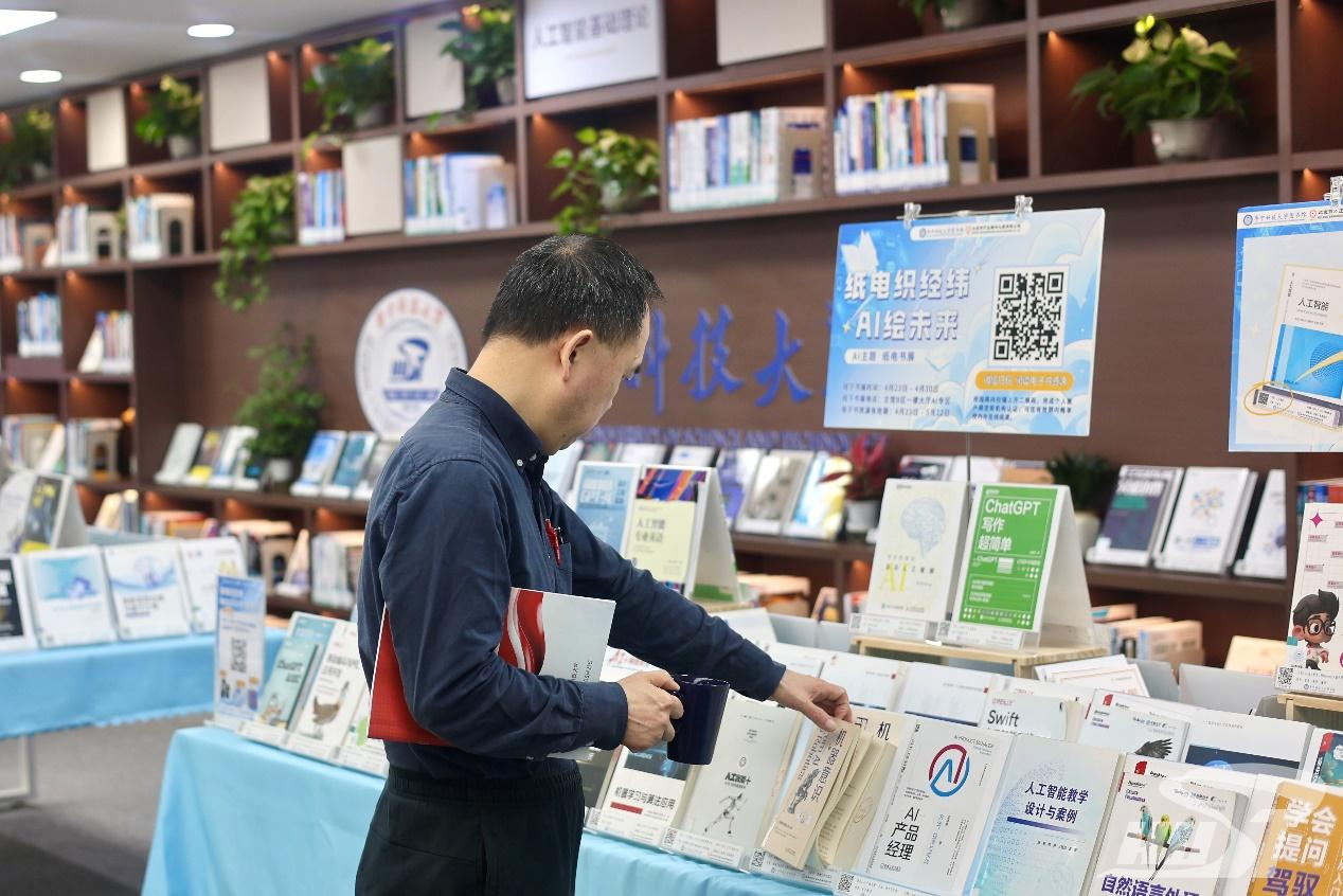 “紙電織經(jīng)緯 AI繪未來”人工智能主題紙電書展,是圖書館推進(jìn)紙電融合文獻(xiàn)資源建設(shè)的創(chuàng)新實踐。展覽精選270種AI主題紙質(zhì)圖書,師生通過掃碼即可實現(xiàn)“紙質(zhì)閱讀+云端暢讀”的無縫切換,還可對自己心儀圖書資源進(jìn)行現(xiàn)場薦購。這種“體驗-反饋-優(yōu)化”的閉環(huán)機(jī)制,讓讀者們從圖書館資源使用者轉(zhuǎn)變?yōu)楣餐ㄔO(shè)者。