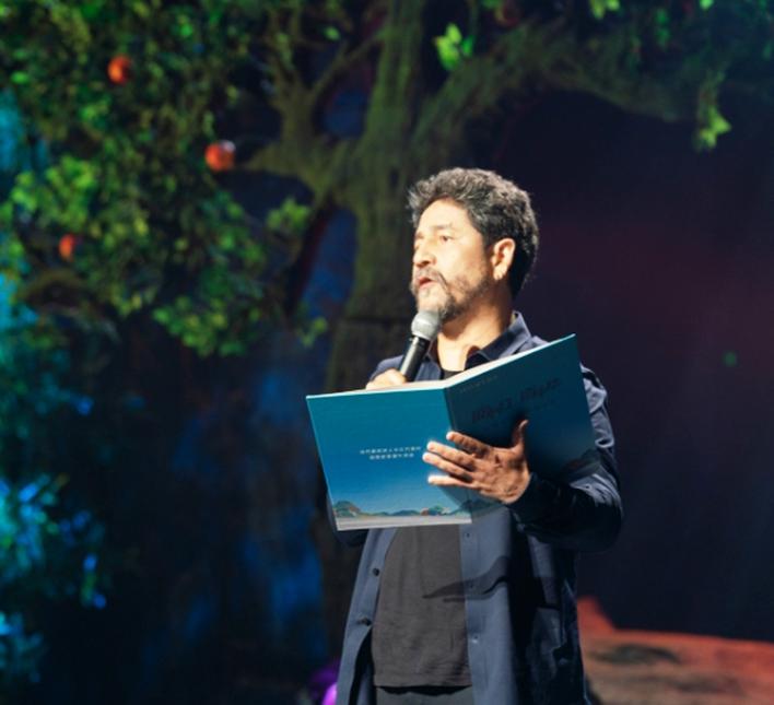 哥倫比亞國際詩人李戈在屈原故里端午詩會上用雙語誦讀詩歌《心靈的交融之旅》。 (周仕偉 攝)