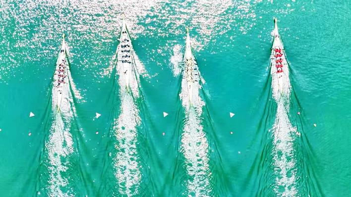 碧波白浪,龍舟競渡,鼓聲震天,賓客如云。