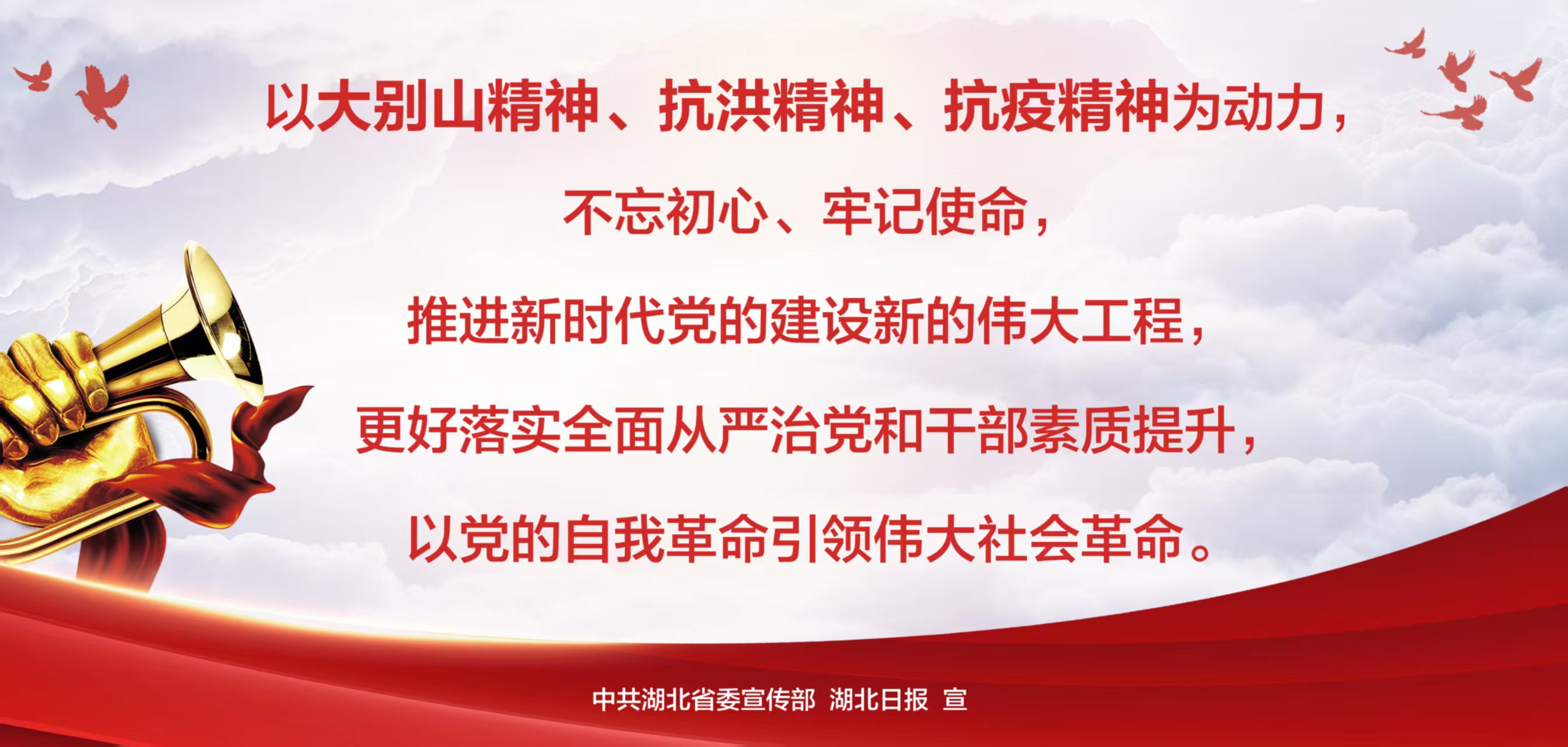 去年深秋,習近平總書記考察湖北時強調,大力弘揚大別山精神、抗洪精神、抗疫精神,廣泛踐行社會主義核心價值觀。這為我們在長江經濟帶高質量發展中奮勇爭先,加快建成中部地區崛起的重要戰略支點,奮力譜寫中國式現代化湖北篇章,指明了要充分汲取的動力源泉,要廣泛匯聚的精神能量。