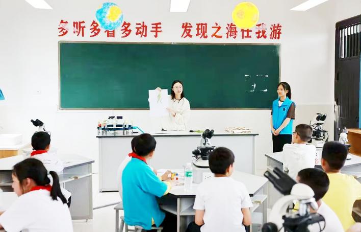 大學(xué)生志愿者走進中小學(xué)科普護水、節(jié)水知識。