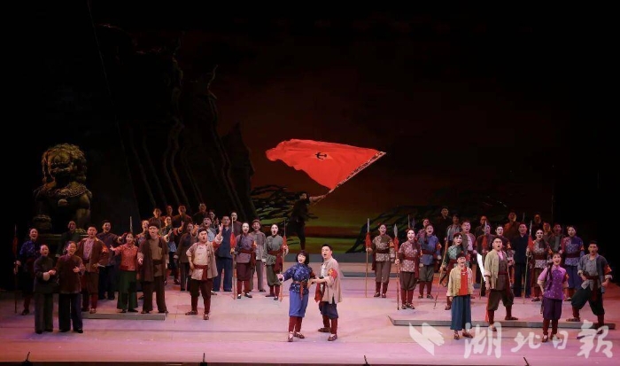 9月13日晚,2025長江文化藝術季“靈動長江”舞臺藝術精品展在湖北劇院開啟大幕。當晚,由省演藝集團打造、省歌劇舞劇院創排的青春版民族歌劇《洪湖赤衛隊》精彩上演。