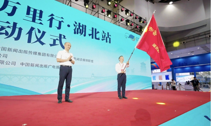 啟動儀式上舉行了“書香中國萬里行·湖北站”授旗儀式。中國新聞出版傳媒集團有限公司副總經理武遠明向湖北省委宣傳部副部長蔡靜峰授旗。雙方共同展旗,旗幟迎風飄揚,象征著全民閱讀品牌——“書香中國萬里行”巡回采訪活動在荊楚大地正式啟航?;顒訉⑷笆秸宫F全民閱讀的湖北實踐,提煉推廣先進經驗。湖北也將以此為契機,進一步推動全民閱讀深入開展,營造更加濃厚的書香氛圍。