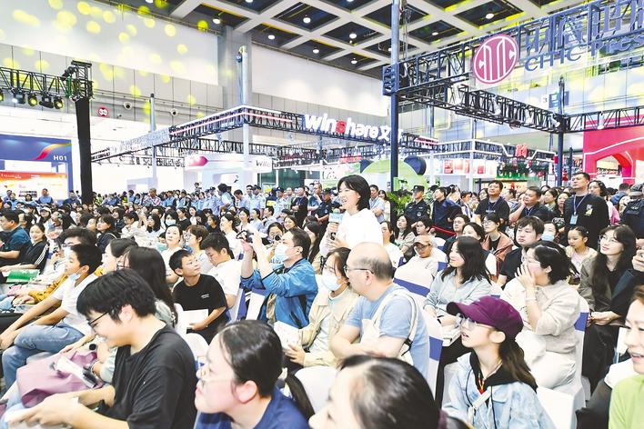 湖北日?qǐng)?bào)全媒記者看到,展會(huì)現(xiàn)場(chǎng)人流如織,不少展臺(tái)旁正舉行著新書(shū)發(fā)布會(huì)、分享會(huì)等活動(dòng),吸引著讀者圍觀駐足,市民紛紛推著購(gòu)物車(chē)選購(gòu)書(shū)籍。