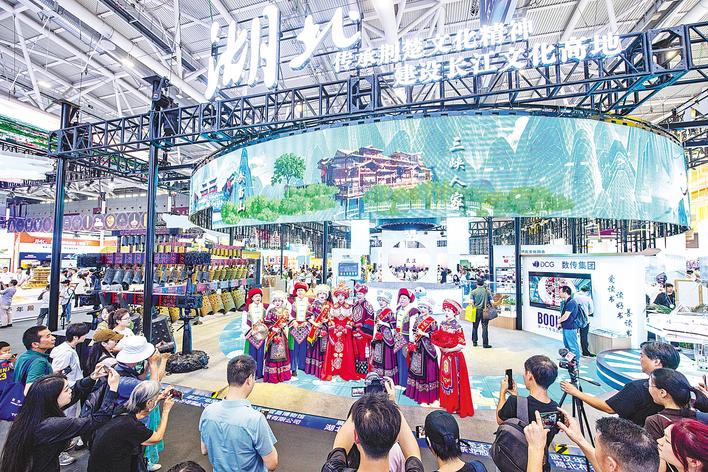 中國(深圳)國際文化產業博覽交易會上,湖北館生動展現荊楚風、長江潮、文化韻、科技感的新時代湖北文化特色。(湖北日報全媒記者 何宇欣 攝)