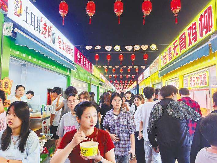 為了讓商戶多賺錢,政府和運營方還協調職院開設側門,發放消費券,增設演出和休息區域,千方百計為夜市引流。