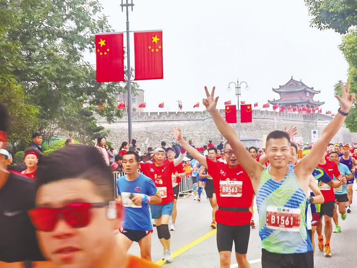 選手們沿著美麗的襄陽古城墻快樂奔跑。 (湖北日報全媒記者 劉孝軍 攝)