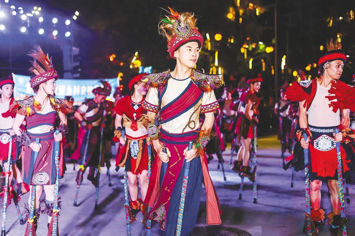 11月2日晚,第六屆荊楚鄉村文化旅游節在宣恩縣開幕。來自省內各地的表演類非遺項目與民俗文化展演,呈現了一場地域特色與文化交融的民俗和民歌盛宴,給游客打造了行進式踩街巡游體驗。(湖北日報全媒記者 王晶 通訊員 鄂文旅 陳明 攝)