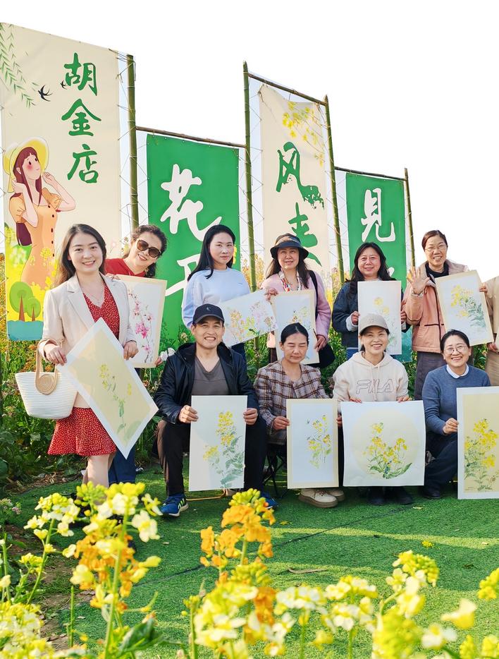 云夢縣胡金店鎮(zhèn)將簡牘文化融入油菜花海,吸引游客爭相打卡。 (李維亮 攝)