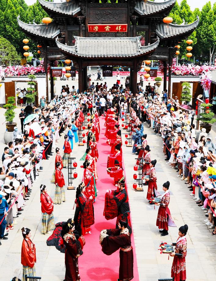 云夢祥云灣文旅度假區(qū)舉辦集體婚禮活動,新人共赴“白首之約”。 (彭雙明 攝)