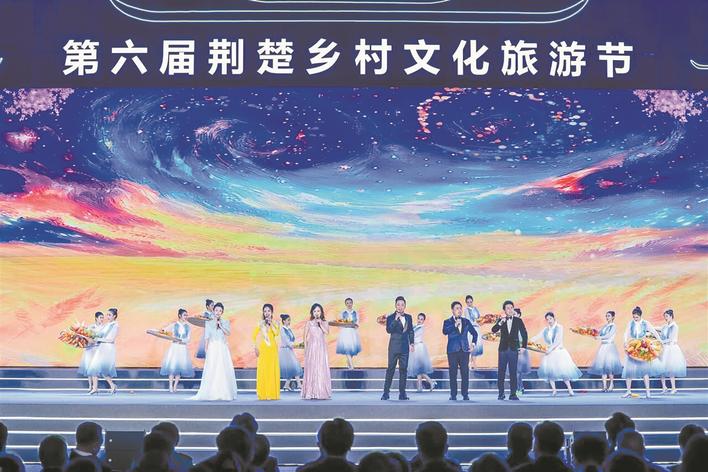 由“喜迎八方客”“湖北好風光”“荊彩匯知音”“豐收幸福歌”“荊楚共此時”等多個篇章組成的惠民文藝演出,生動展現(xiàn)了荊楚鄉(xiāng)村文旅時代風貌和鄉(xiāng)村文化振興成果。