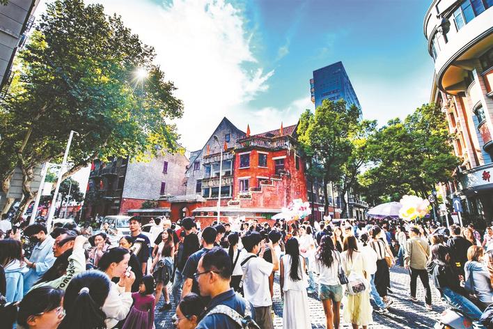 武漢黎黃陂路游客如織。