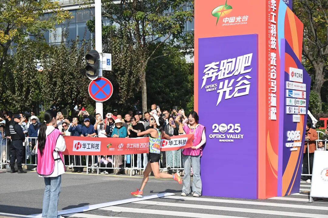 上午10時19分,選手王濤率先沖線,以2小時17分49秒奪得2025光谷馬拉松男子全馬冠軍。王濤來自甘肅,今年31歲,這是他第二次參加光谷馬拉松,去年因感冒未能取得好成績,今年奪冠,他心情十分激動。王濤說:“今天準備的很充分,很感謝一路上志愿者為我加油。光谷很美,光馬體驗非常好,明年我還會來!”