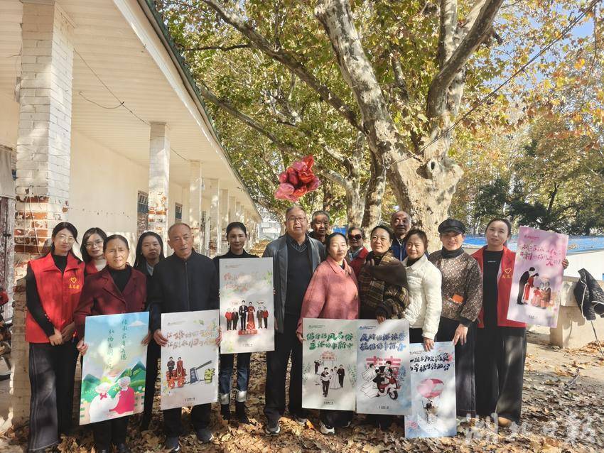 就在這片金色梧桐的見證下,一場關于婚嫁新風的倡導活動正在悄然進行。社區(qū)工作人員將“抵制高額彩禮,倡導文明婚俗”的宣傳融入這場溫馨的活動。