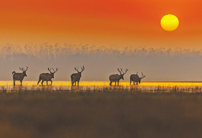 麋鹿回歸中國40年來,種群數量突破1.5萬頭,分布于27個省份100多個棲息地,野生種群不斷壯大。(湖北日報記者萬雷萌、彭磊、通訊員楊光明