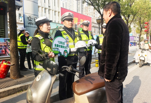 今年12月2日是第十四個“全國交通安全日”,鐘祥市交警部門將宣傳主會場設在人流密集的陽春大街,通過展板宣傳、有獎問答、宣誓承諾、文明勸導等多種形式,向市民普及交通安全知識。