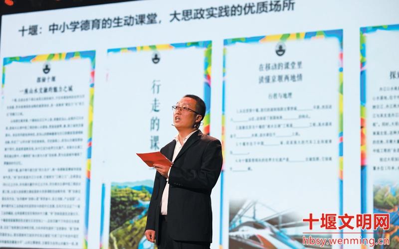 最后登場的市教育局《行走的課堂》思政課路演,為整場展演畫上圓滿句號。該節目以京堰協作為紐帶,通過“研學專列+實地探訪”的創新模式,展現北京學子走進十堰水源地、感悟大國工程的研學歷程。當屏幕上出現1100余名北京學生探訪南水北調中線工程的鮮活畫面,“水潤京華,緣起十堰”的深厚情誼令人動容,既呼應了“文明河流”的守護主題,更生動詮釋了“思政課不僅在課堂上講,更在社會生活中講”的育人理念。