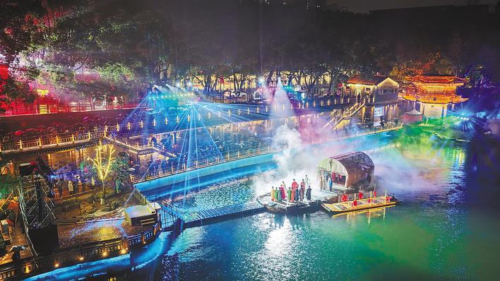 2025年12月31日至2026年1月2日,每晚7時(shí)30分開始,咸寧城區(qū)潛山腳下月亮灣街區(qū),濯足廊前的淦河水面,將連續(xù)3晚上演大型“溫泉沸波”實(shí)景劇。