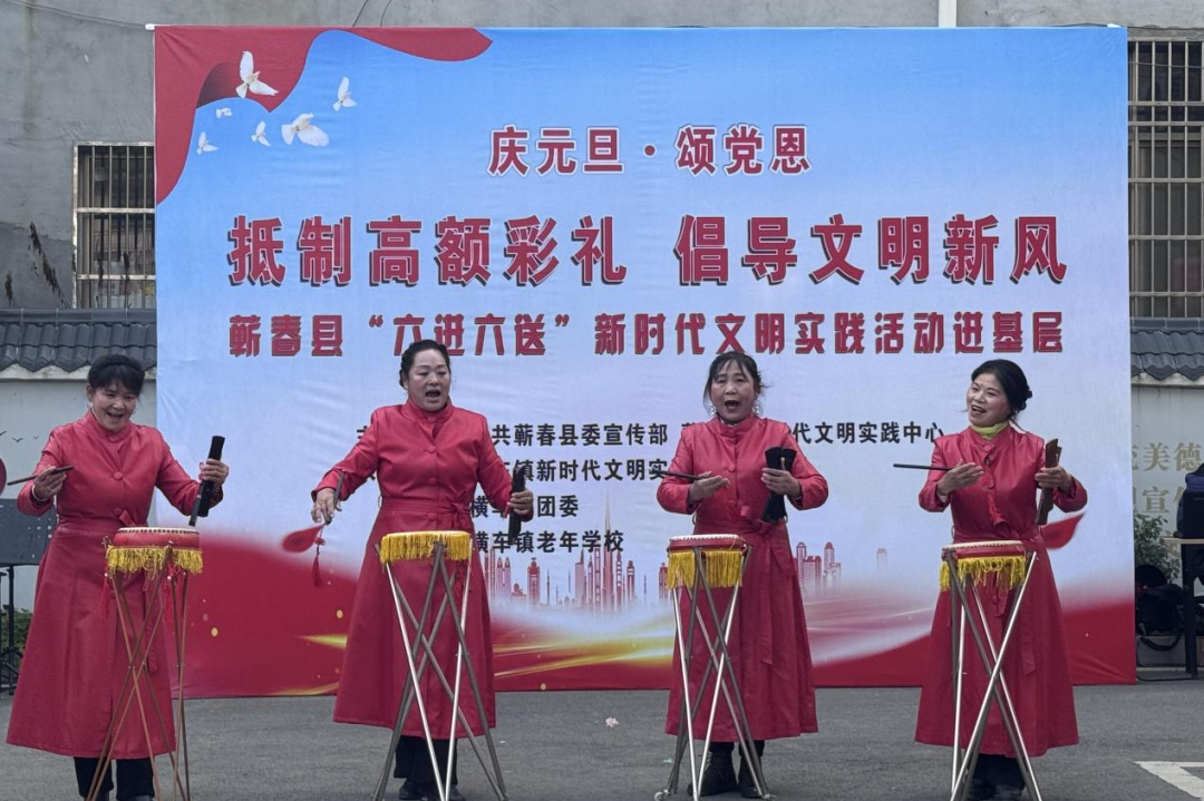 蘄春縣“慶元旦 頌黨恩——抵制高額彩禮 倡導文明新風”“六進六送”新時代文明實踐活動在橫車鎮老年學校溫情啟幕,學員們以自編自演的文藝節目,奏響文明新風主旋律,讓移風易俗理念隨藝術暖流浸潤人心。活動豐富了老年群體精神文化生活,更讓抵制高額彩禮、倡導文明新風的理念深入人心。