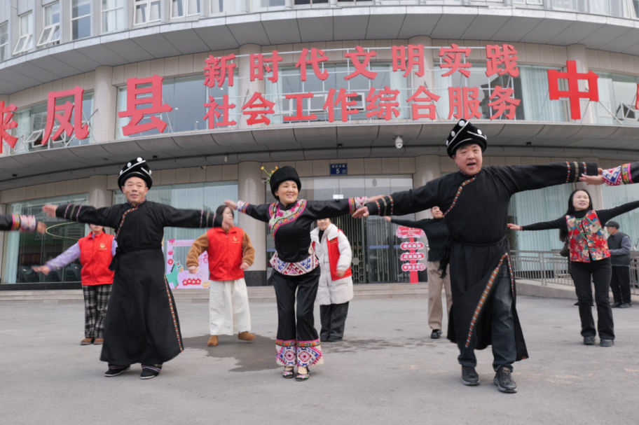 歡快的土家擺手舞在來鳳縣新時代文明實踐中心廣場跳起來啦!為迎接2026年元旦,居民身著傳統民族服飾,圍成圈踏著鮮明的節奏擺手起舞,動作舒展而整齊,臉上洋溢著喜悅的笑容。現場不僅充滿了熱鬧喜慶的節日氛圍,更展現了土家文化的獨特魅力與蓬勃生命力,以昂揚的姿態和深厚的文化傳承,共同歡慶新年的到來。