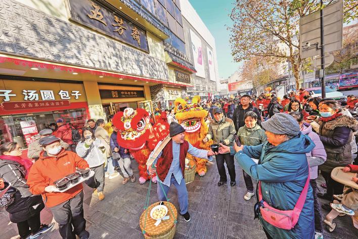 1月6日,武漢中山大道武漢五芳齋總店前,《賣湯圓》的經典旋律伴著蒸騰熱氣穿街而過,第38屆五芳齋湯圓節暨武漢五芳齋80周年慶典正式拉開帷幕。湯圓師傅揭開湯鍋蓋子,熱氣裹挾著甜香撲面而來,現場市民爭相領取“2026年第一鍋湯圓”。拿到湯圓的人紛紛舉著碗拍照,分享這份新春頭份甜。(楚天都市報極目新聞記者李輝 通訊員楊穎 程丹攝)