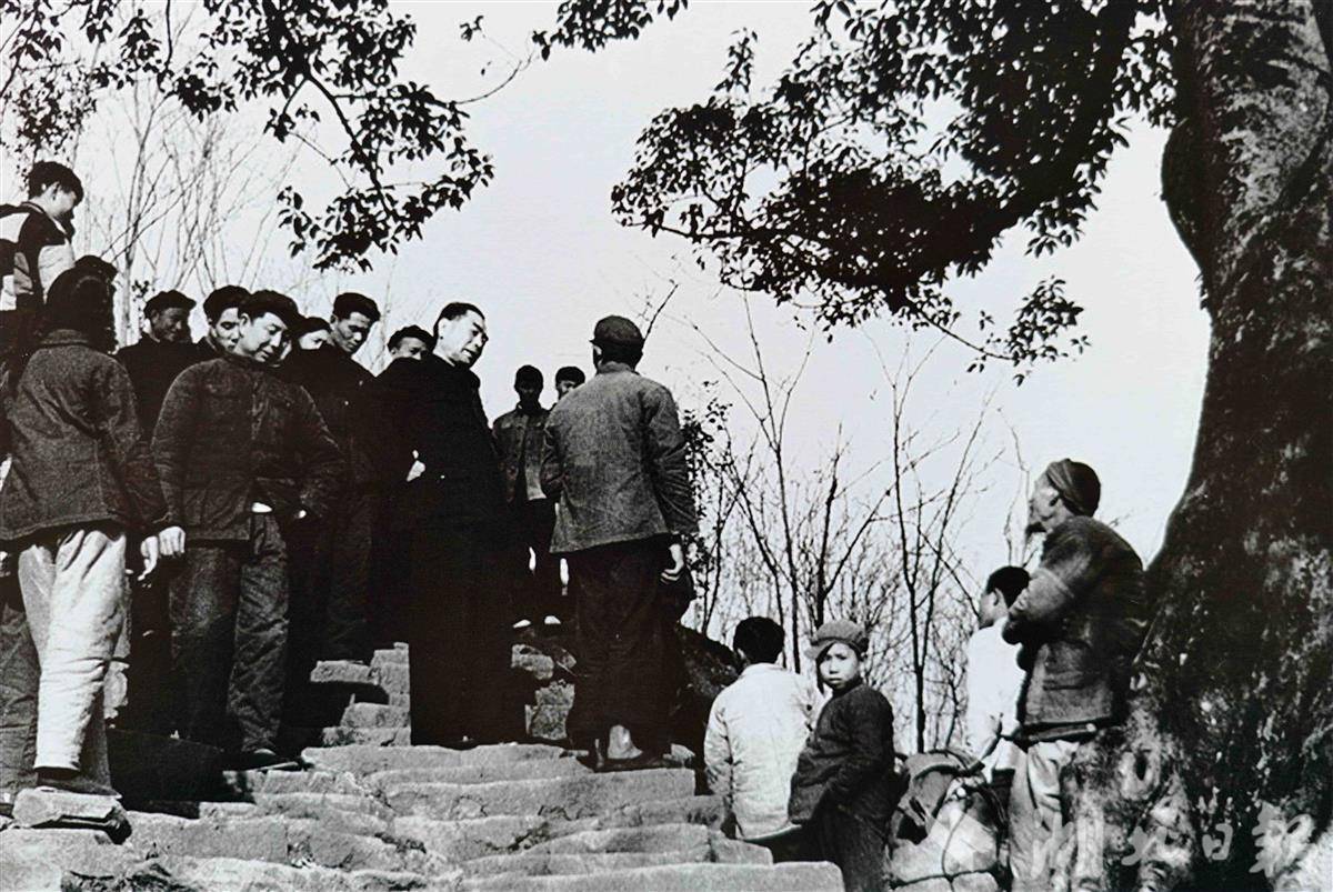 1958年2月周恩來視察宜昌山區(qū)農(nóng)村。(湖北日?qǐng)?bào)記者 張其軍 攝)