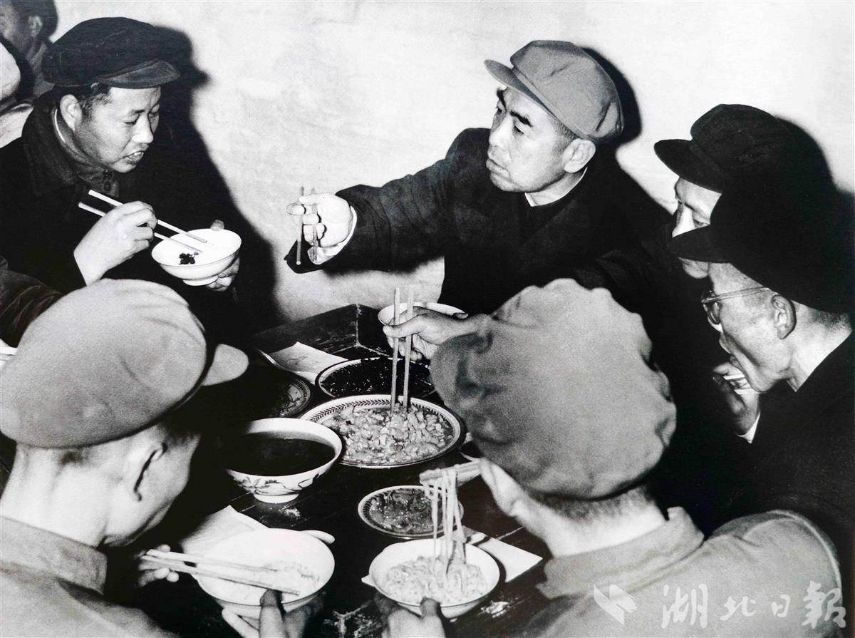 1958年12月周恩來與應(yīng)城地、縣委書記一起進(jìn)餐。(湖北日?qǐng)?bào)記者 張其軍 攝)