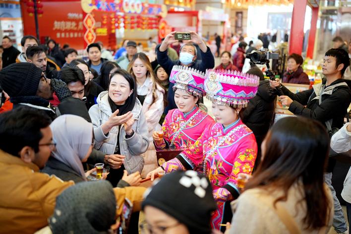 看非遺節(jié)目、打非遺年貨、在直播間與大V面對(duì)面互動(dòng)……1月17日,2026年首場(chǎng)“知音湖北·超級(jí)文旅日”暨第五屆湖北非遺嘉年華活動(dòng),在武漢長(zhǎng)江新區(qū)華中貿(mào)易服務(wù)區(qū)舉行,同期開展“荊楚非遺國(guó)際會(huì)客廳”揭牌、荊楚非遺品牌發(fā)布及資源對(duì)接、非遺大師講堂、荊楚戲曲薈萃、荊楚非遺好物上線展銷、各市州非遺展演等活動(dòng),當(dāng)天吸引數(shù)萬市民賞非遺、逛市集、打年貨。
