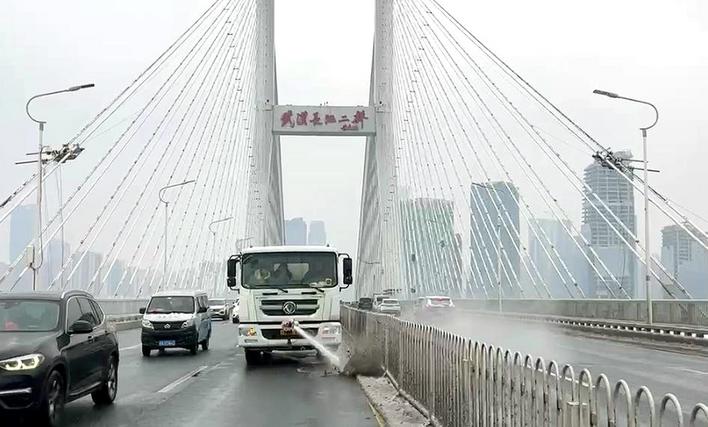 身背70^o^C熱水和液態融雪劑,武漢首臺液態融雪劑撒布車高效融雪 通訊員供圖