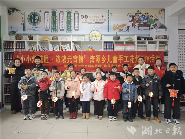 灣潭鄉新時代文明實踐所在第七屆全國文明村鄧遐村新時代文明實踐站開展“小小燈籠匠·濃濃元宵情”兒童手工花燈DIY活動。20余名少年兒童在家長陪伴下,親手制作花燈,感受傳統節日的獨特魅力。